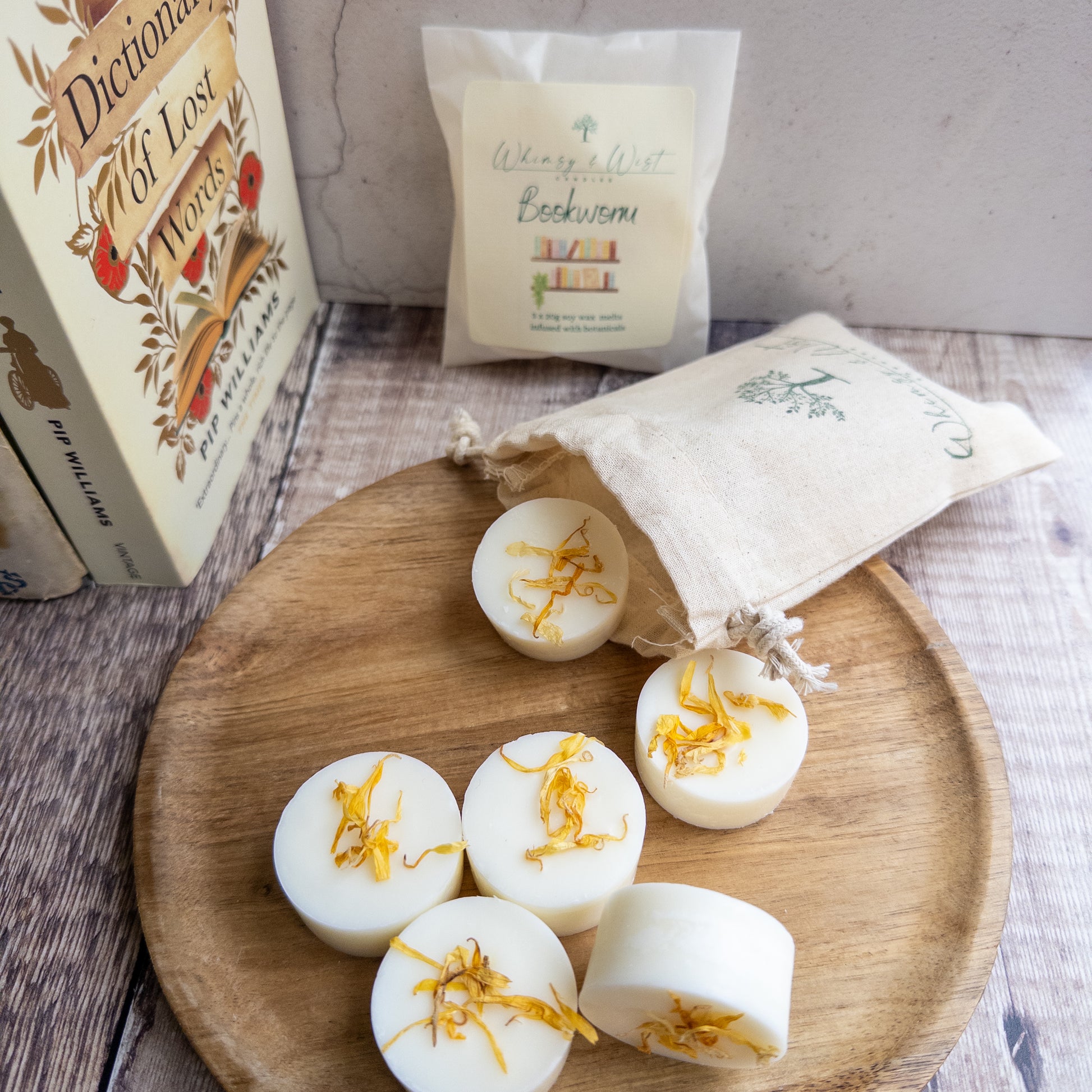 Large wax melts in our popular Bookworm scent. Each melt is approx 20g and gives up to 16 hours of scent. They are available in small packs of 3, or larger packs of 6 which come in our organic cotton bags.