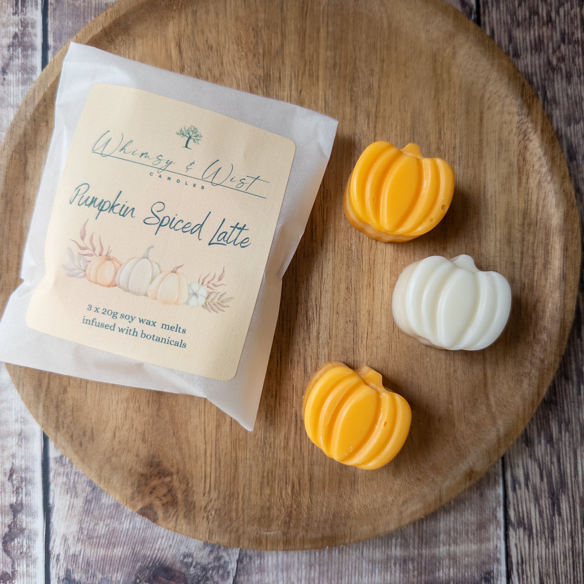 Large wax melts in our Limited Edition Pumpkin Spiced Latte scent. Each melt is approx 20g and they are available in small packs of 3, or larger packs of 6 which come in our organic cotton bags.